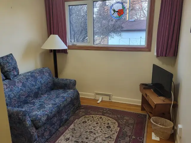 Great Location: 10 min walk to Crescent Drive Park, Golf Course, Thermea Spa, Transit and more. 5 min walk to bus stop route F8 going to U of M or to downtown. 5 min by bus to Freshco on Pembina Rent. 8 min by bus to No Frills on Pembina.