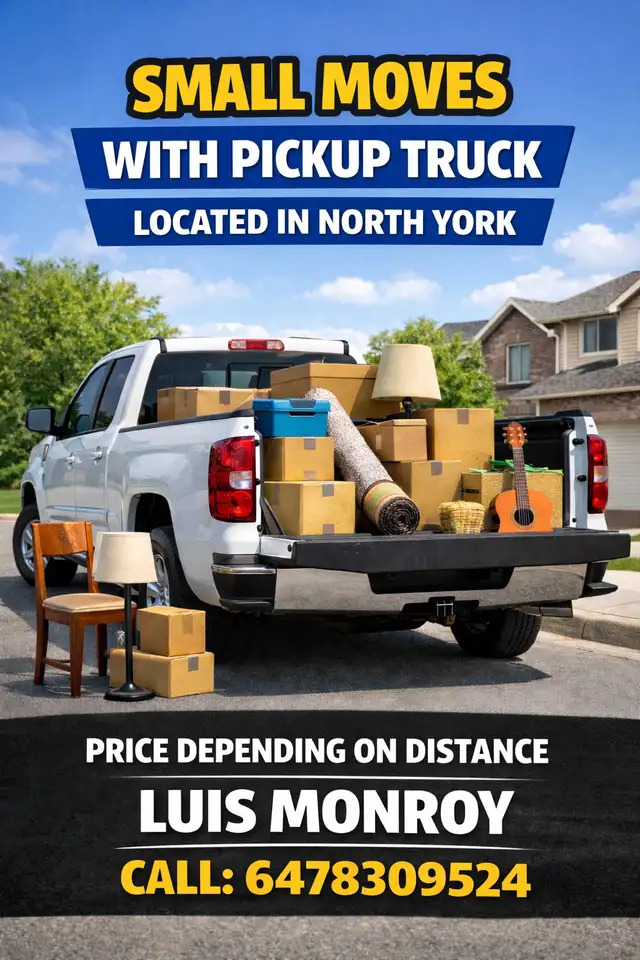 Professional and reliable small moving services using a pickup truck. Ideal for apartments, condos, single rooms, furniture, appliances, and store pickups.