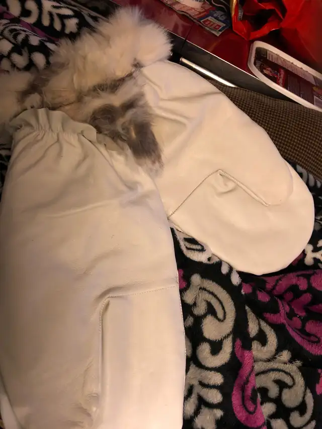Homemade fur/ leather mittens