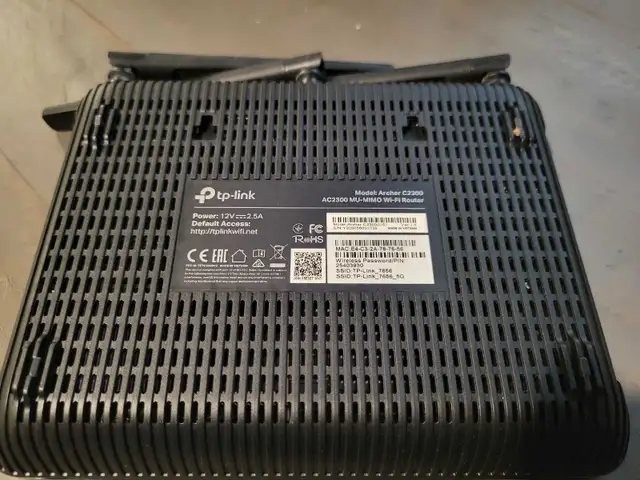A used TP-Link Archer C2300 MU-MIMO Wi-Fi Router that delivers fast and reliable internet connectivity for your home or office. This router comes with advanced features such as dual-band technology, multiple antennas, and USB ports for enhanced performance and connectivity. It's in great condition and ready to boost your network!