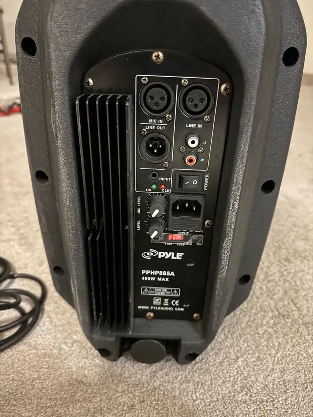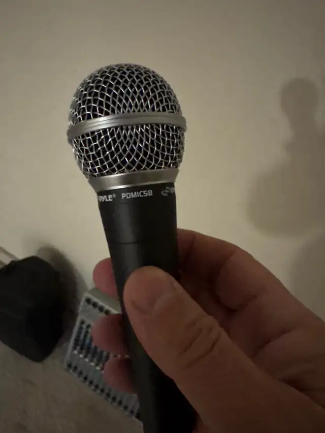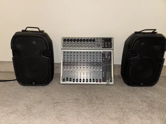 Peavey PV-14 mixing board, 2 Pyle 400w powered speakers, 2 speaker stands, Pyle pdmic 58 microphone with cables. Asking $400 please text 825-488-3610
