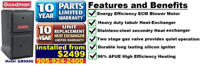 ✅Goodman GR9S96 40K BTU with installation and warranty for $2299