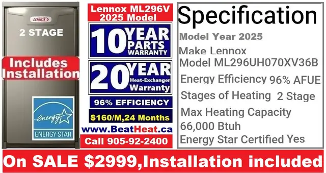 ✅Lennox ML296UHO70XV36B 70000 BTU 96% Efficiency with installation $2899