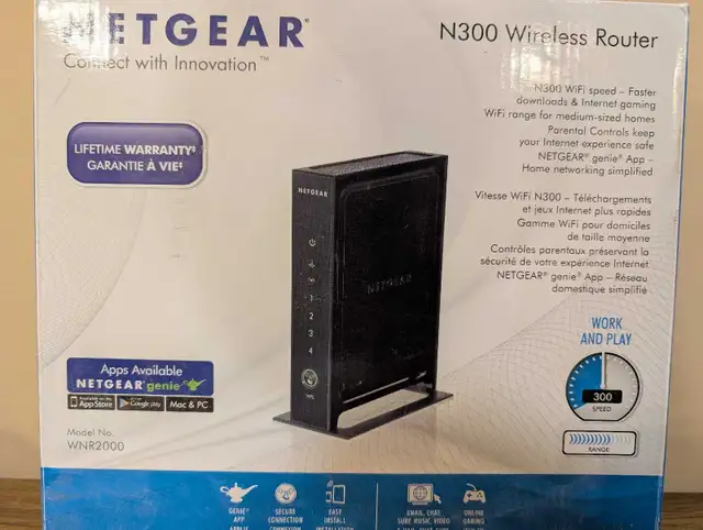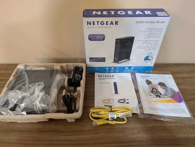 Netgear N300 wireless router in original box. Never used.