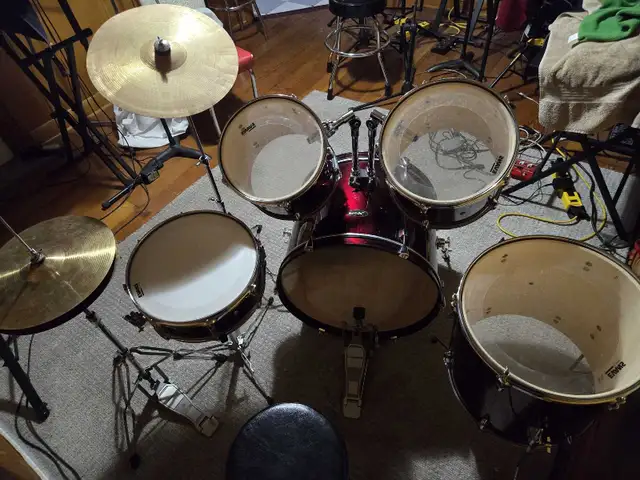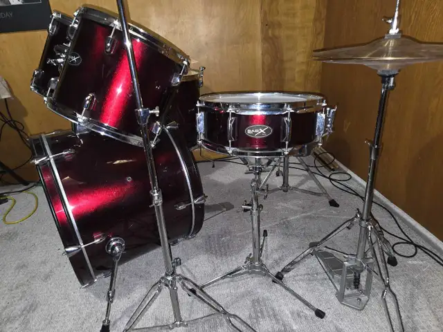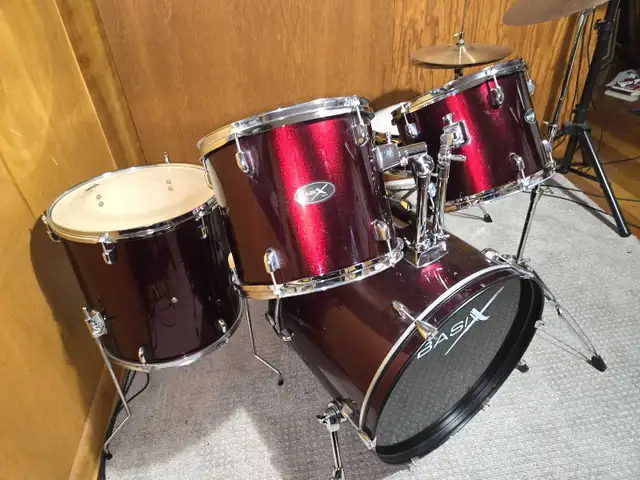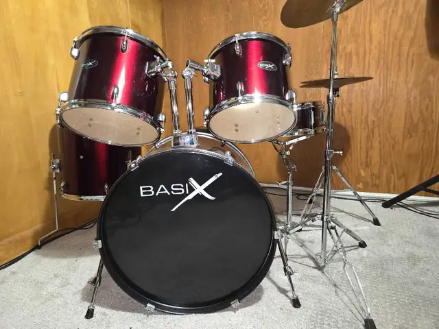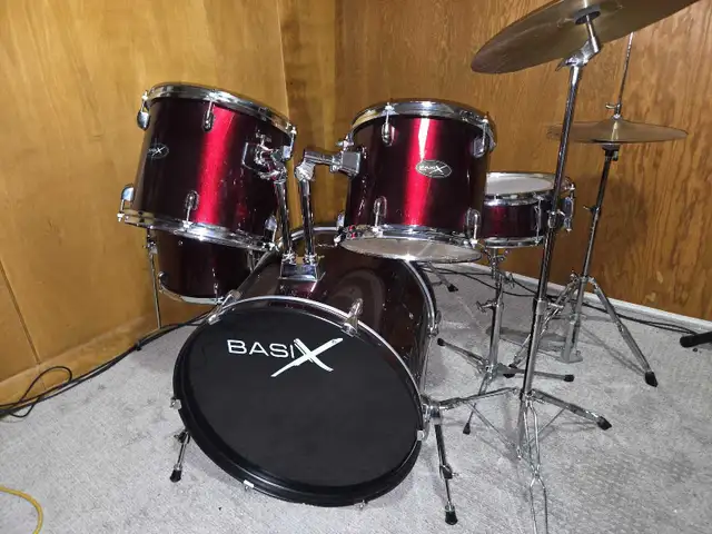 Like new, candy apple metallic five/piece Basix acoustic drum kit, comes with drum trone, hihat, cymbals and a pair of drum sticks. This wouldn't last long, open to reasonable offers. Call or text 403-836-9702. Thanks