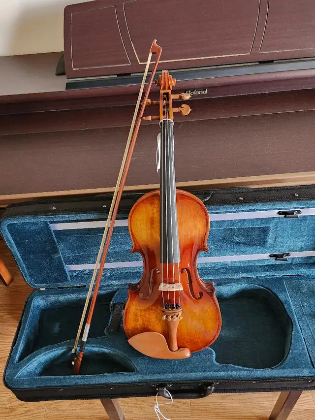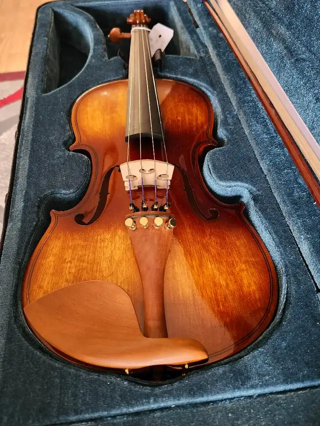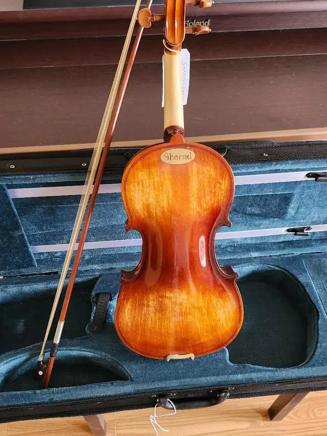 The Eagle by Sharnel Instruments is a full size violin that has a fine ring and is easy to play. With it's design quality and upgraded strings it is set up for best sound and ready to play. It has a look you will be proud to play and own. The package . includes case, new bow, shoulder rest and rosin. This violin is teacher approved. Available in Olds or will deliver or ship FREE. For this and other acoustic or electric violins text or phone Neil at 403-901-3001 or visit us at www.congostring.com FREE
