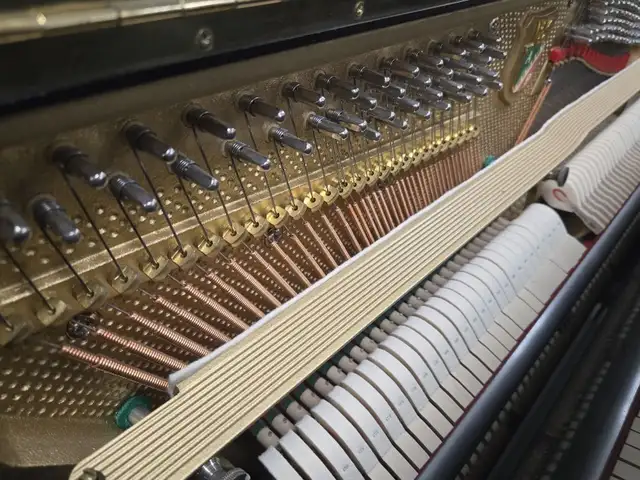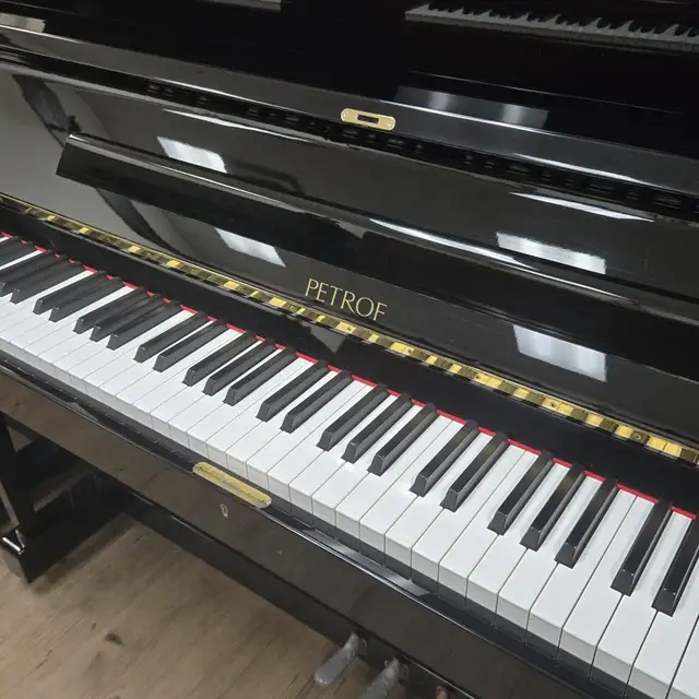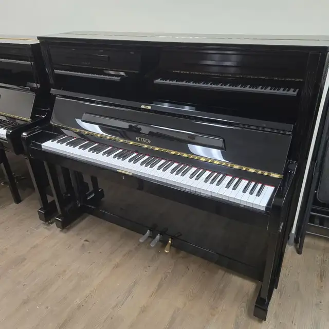 The Petrof P125 is a 50-inch professional upright piano crafted by Europe's largest premium piano manufacturer. It offers a rich tonal palette, featuring a singing treble and warm bass. Petrof pianos are built with high-quality European materials and expert craftsmanship, reflecting over a century of piano-making excellence. All Petrof uprights use solid brass Agraffes from bass to treble, rather than a standard pressure bar, which enhances control of string angles and termination points for greater tonal clarity.