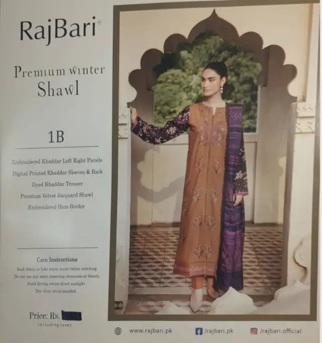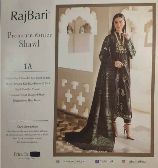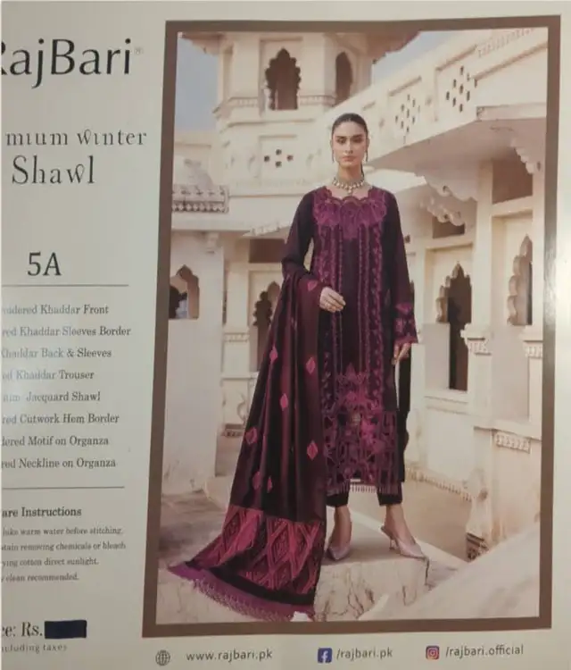 Raj Bari Premium winter Collection unstitched ladies suits.