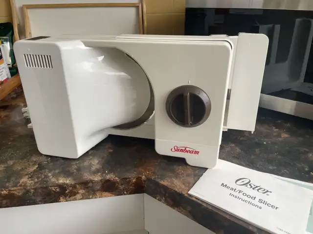 Like new (used once), Meat, cheese, and vegetable slicer. Speeds up meal preparation. Comes with the instruction manual. $50.00 firm (less than half price). Prefer texts at 587 594-1720. Serious inquiries only - thank you.