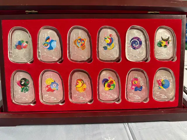 Chinese zodiac silver plated commemorative medals. 12 medals in a beautiful protective box. $30. Please phone or text 780-335-1008. Pickup will be in Wetaskiwin.