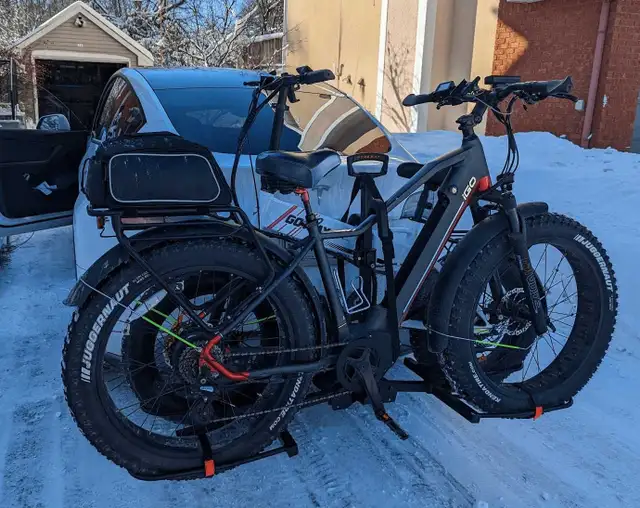 Igo e-bike that's practically brand new. The battery has been replaced since it died died, so there is a new battery installed on the lower sub frame that does not match the original bike. But it does have twice as much voltage and lasts twice as long.