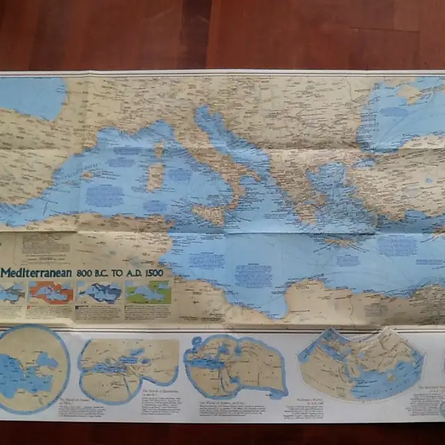 The reverse side features the Historic Mediterranean, 800BC to AD 1500 map, and provides stunning detail into these features.
