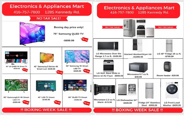 -no tax sale - fridges- stoves -dishwashers- washers and dryers- microwaves -and all small home appliances no tax clearance sale