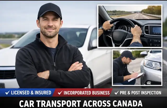 I provide vehicle driving/transport service (we drive your car — not towing) through a registered corporation with insurance coverage.