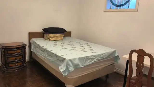 Two bedrooms, two living rooms, one DEN, one kitchen, one bathroom, Walkout basement, the whole floor is for rent, with separate entrances and exits, a hall of 500 square feet. A full set of furniture with tables, beds and bookshelves. Water, heat, laundry, unlimited high-speed Internet and utilities are included.