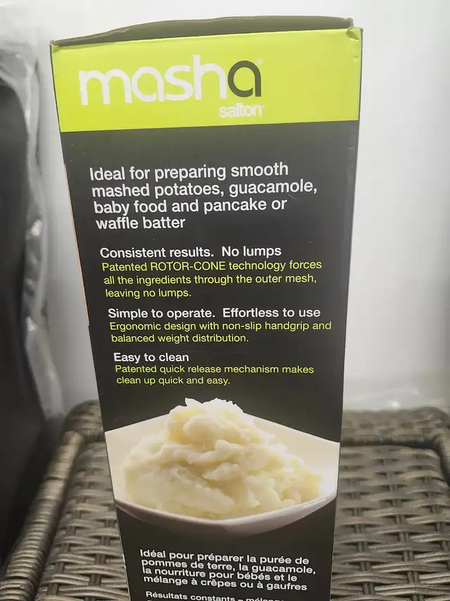 Up for sale is a brand new in the box is the Masha from Salton Mashed Potatoe Masher Blender