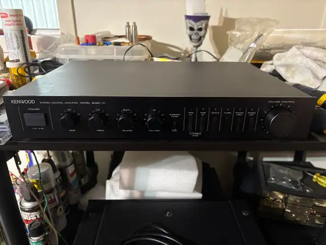 For sale one Kenwood Basic C1 preamp in very good used condition. Clean unit , everything works except one LED light for one off the tape monitors. Face is very good.