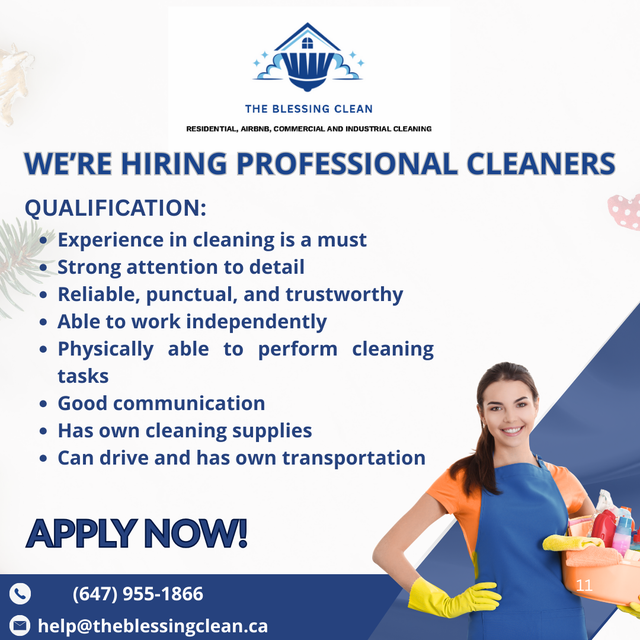 Please send your resume to theblessingcleanontario@gmail.com or help@theblessingclean.ca