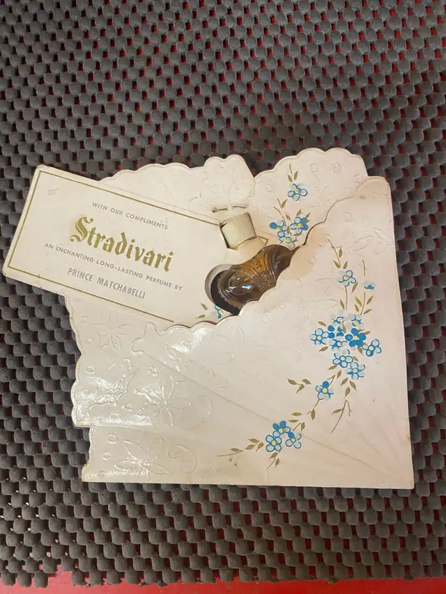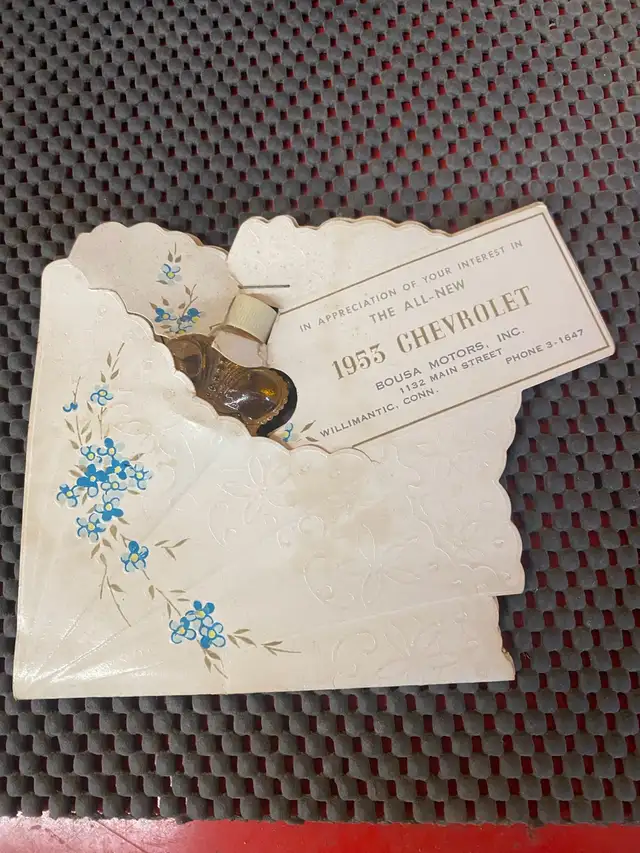 1953 Chevrolet Dealership Promotional (Promo) item, the iconic Stradivari perfume imported From France by Prince Matchabelli. Originally given away as a marketing collectible, this vintage treasure is a must-have for automotive enthusiasts and perfume collectors alike.