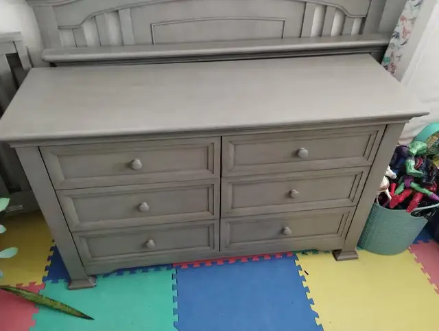 Baby Dresser and Crib Set is manufactured by Oxford Baby Kendra for Toys “R” Us . The Gently Used Dresser measures approximately 56” Long x 19” Deep x 34” High. The Gently Used Crib measures approximately 58” Long x 32” Deep x 37” High Front and Sides with 49” High Backboard. The Crib and Dresser were used for only one (1) Child and so are Like New. The Crib Sells for $550.00 New with the Dresser Selling for $700.00. Price $400.00. Call 403.226.3222.