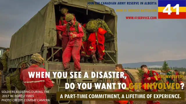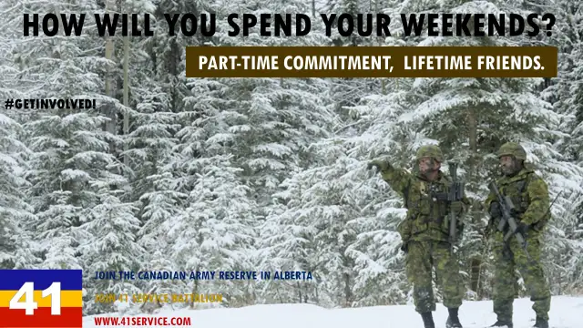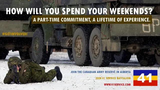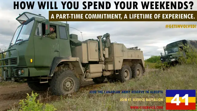 Join 41 Service Battalion. This is a part-time job with dental and education benefits, a retirement pension and an incredible experience. Combat Service Support (CSS) Trades provide transferable training and experience toward your civilian career.