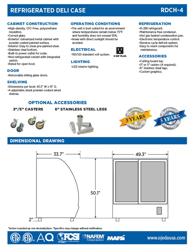 Ojeda RDCH-4 Refrigerated Deli Cooler