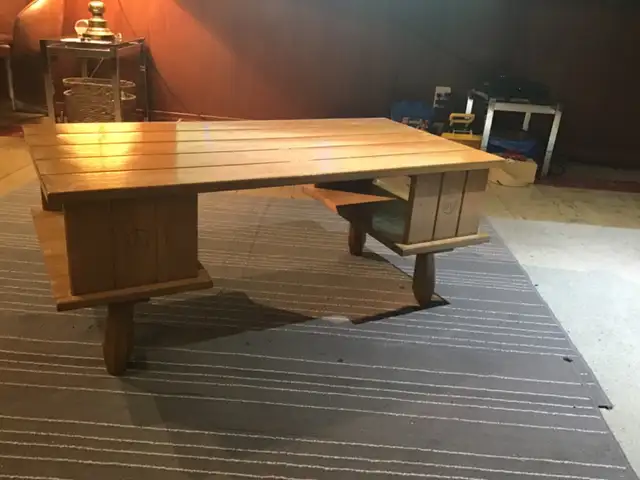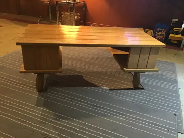 Wood,coffee table with 2 shelves.Length 40 “ ,width 20 “.$20.Phone 204 661-1692 after 5 p.m.Please view my other ads.