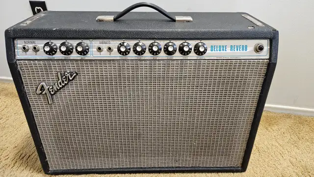 Mid 70's Fender Deluxe Reverb. Silverface! Great sounding amp! I will definitely be crying when she leaves me! . . But it's time to let her go. It's not in perfect cosmetic condition. But it's not bad at all. It's a player. Hopefully the pics tell the story.