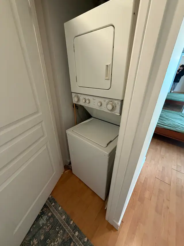 Window coverings, Murphy bed, tv, stove, dishwasher, washer, dryer, microwave, couch, dining set, fireplace, balcony, exclusive gym facilities, 24/7 security.