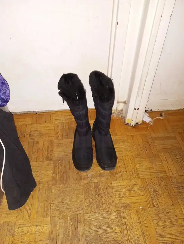 These are a pair of black, warm winter boots for ladies,