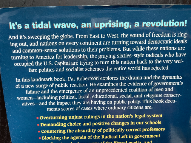 The televangelist discusses what he considers the flaws of liberal ideology, his prediction of liberalism's collapse, and his views on the resurgence of "moral vitality." 200,000 first printing.