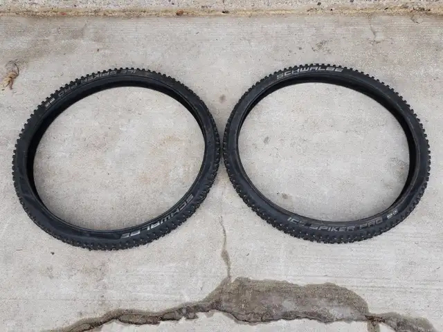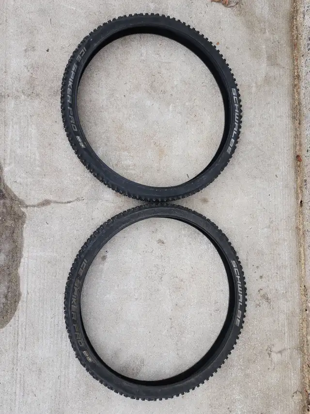 Forsale is a set of 29" x 2.25" Schwalbe Ice Spiker Pro studded bicycle winter tires. Good used condition with tons of tread left and minimal wear on the studs.