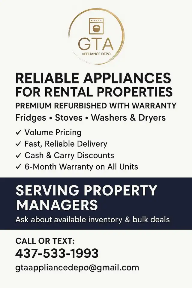 Property managers across the GTA trust Appliance Ally for fast, reliable appliance solutions that keep tenants happy and turnovers smooth.