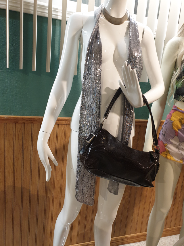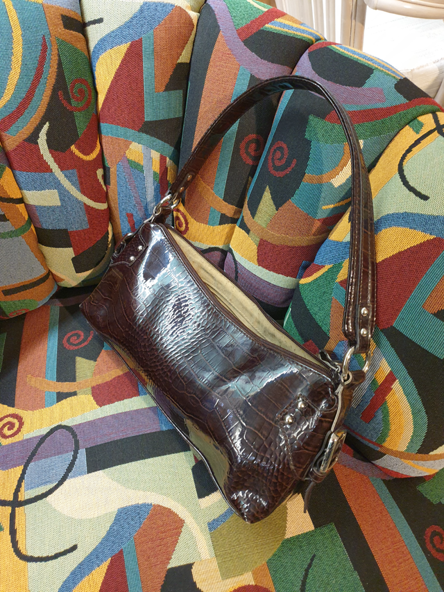This elegant shoulder bag is one of Liz Claiborne's hardest-to-find designs. Crafted in rich Crazy Horse leather, it offers timeless style, durability, and a beautifully aged character that appeals to collectors and vintage fashion connoisseurs alike.