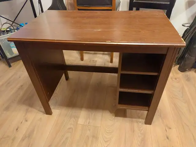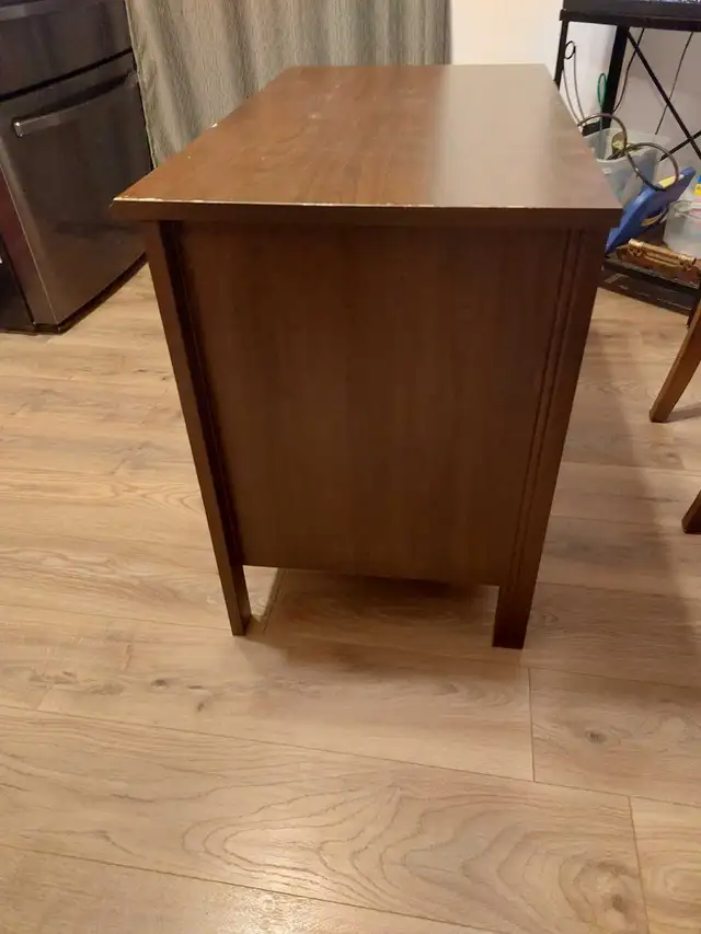 36 inches wide, 21 inches deep, 29 inches tall. Has some wear on the top.
