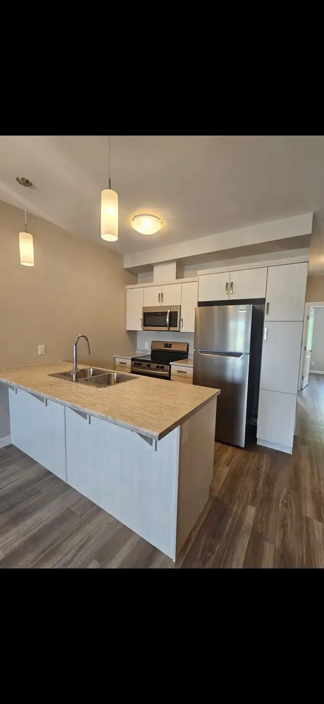 BRAND NEW 3 Bedroom,1 bathroom apartment available for rent in Grunthal! Located on the second floor, this beautiful suite features a modern themed kitchen with black and gold accents, and comes with a built in microwave and dishwasher. No backyard neighbours to worry about! Live in modern style at an affordable price. Be the first ones to live in this gorgeous suite! Only $1495/month plus hydro and water. 1 car Garage Available for $175/month. Available February 1st. No smoking. Text 204-371-7961.