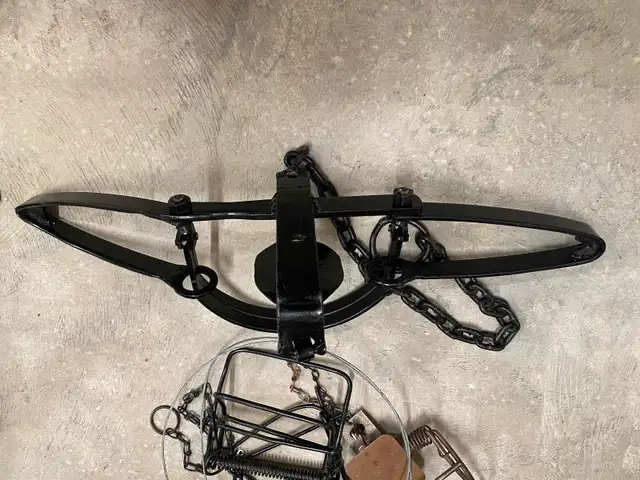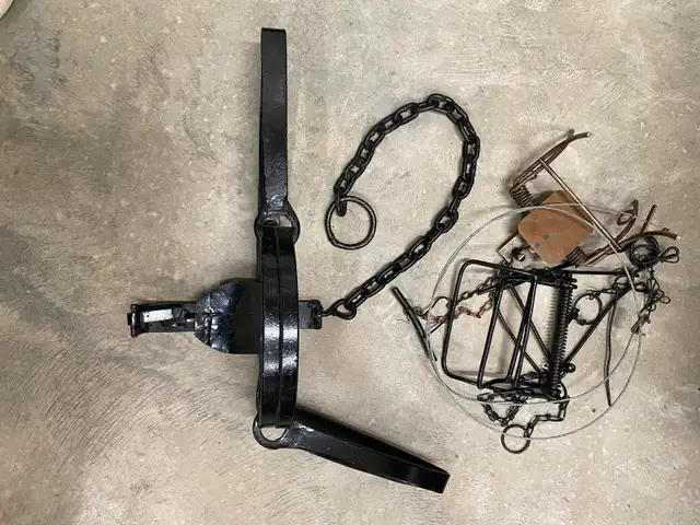 Wolf Trap and 3 others selling as package . Hard to find antique wolf trap 28” across.. $100.00. Phone or text 204-993-0227.