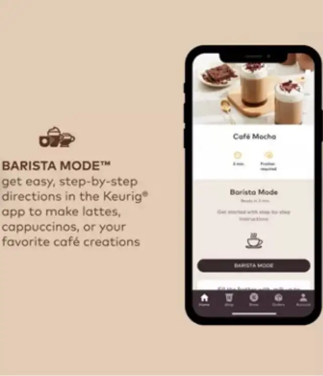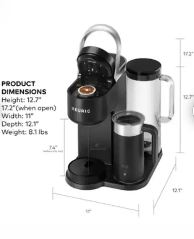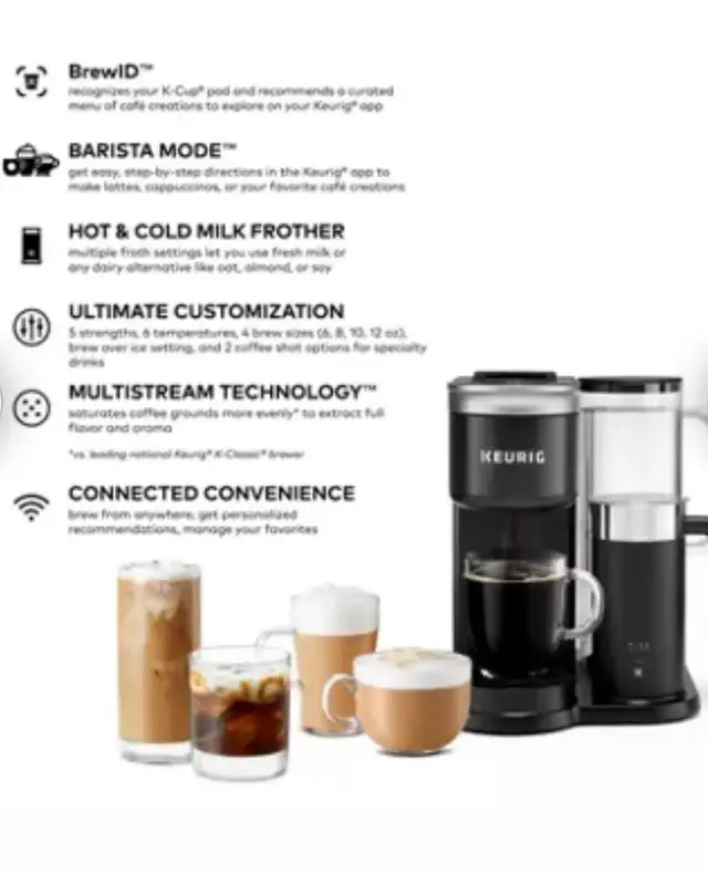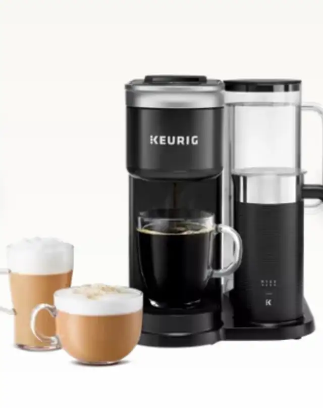 Keurig K-Café SMART Single Serve Coffee Maker is a versatile single-serve coffee machine that can brew regular coffee, as well as make lattes and cappuccinos using K-Cup pods and a built-in milk frother. Its "SMART" features include Wi-Fi connectivity via the Keurig app for customization, remote brewing, and tailored drink recommendations.