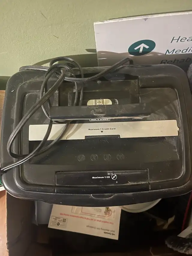 This paper shredder is ideal for destroying sensitive documents and protecting your privacy. While it's a used item, it's still ready to tackle your shredding needs with ease.