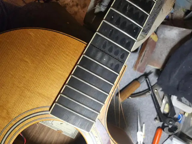 The Shoppe Calgary. Acoustic, bass or electric guitar complete fret dressing. 140.00. No waiting for weeks get one on one service. Darrell Britton - Owner of The Guitar Shoppe that was in Long and McQuade for 15 years. I have had the pleasure of working with such greats as Bryan Adams, Waylon Jennings, Bruce Cockburn, Tommy Chong, Valdy, and others. Was also authorized as the Official Gibson Warranty Repair Tech in Calgary. Now carrying DiMarzio pickups