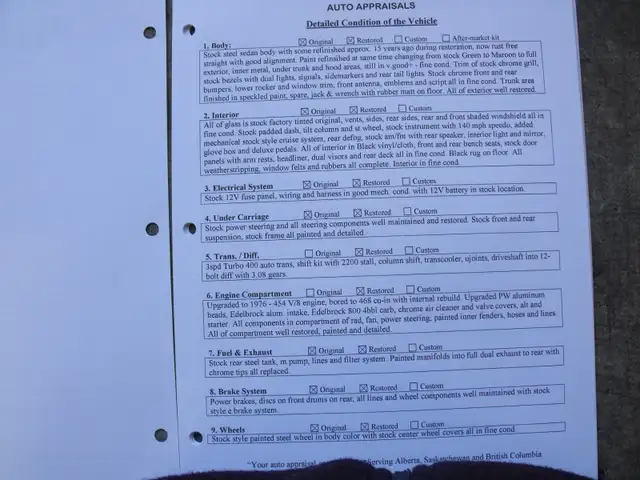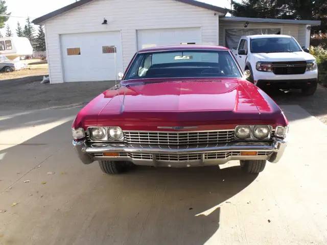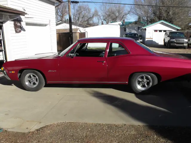 1968 Chevrolet Biscayne 427 clone-454 fully rebuilt roller engine-9.5 comp-alum heads-intake-750 edelbrock-turbo 400 -2200 stall-shift kit-12 bolt posi-3.08 ratio-new wheels-tires -windshield-cruise control-140 speedo-am-fm-tilt wheel-tinted glass-rear defog-body-paint-int-like new----$34900.00------780-385-0858----owned for 18 years