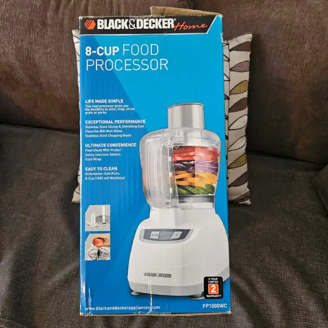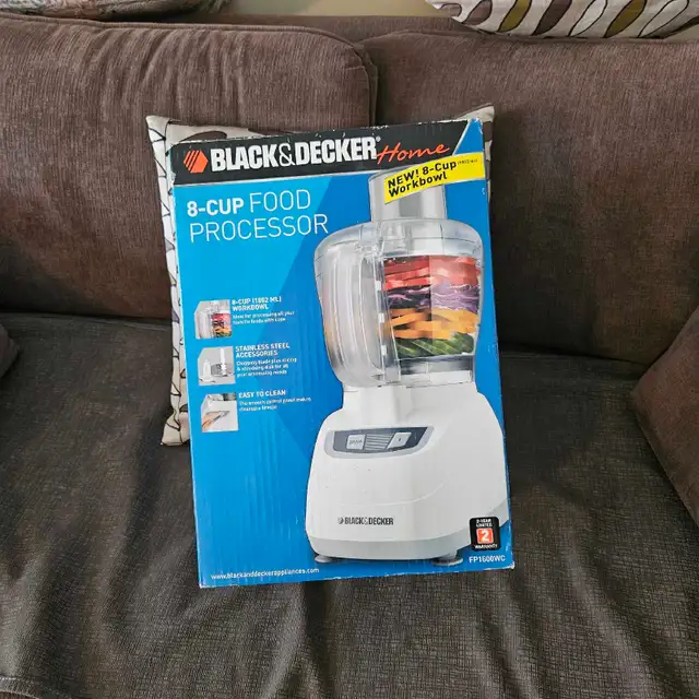 Black & Decker 8 Cup Food Processor. Brand new in box, includes all attachments, never been used. Asking $58.⁰⁰.