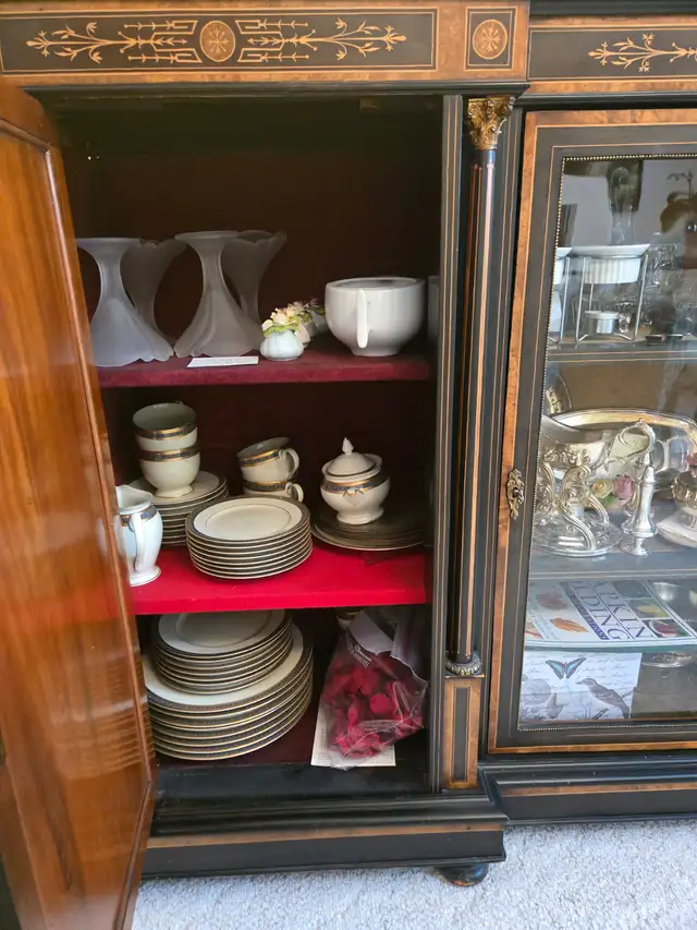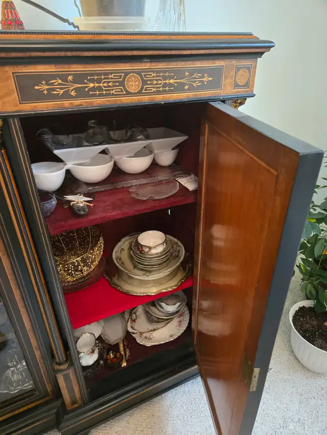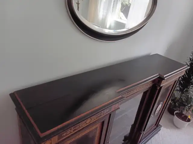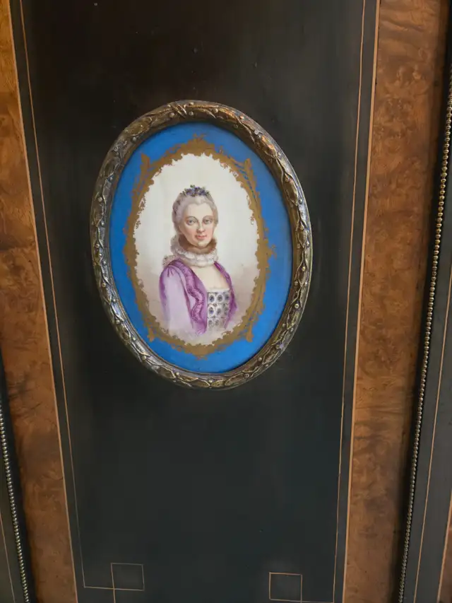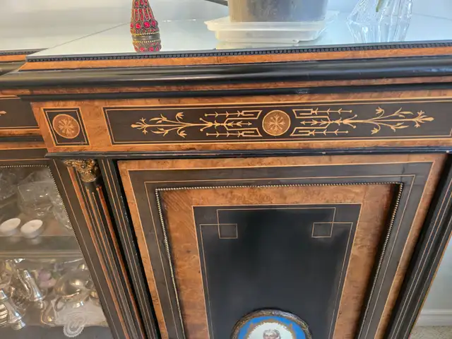 French Sideboard - appraised by two antique dealers in 1998; from the mid-1800s: featuring two porcelain cameos from Limoges, France. Antique dealer price $4,500 – 5,000. Asking $2,500. Call or text seven-eight-zero-nine-eight-three-zero-eight-seven-three (780-983-0873).