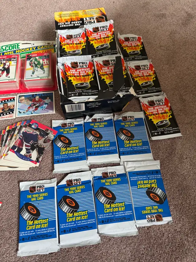 * 49 unopened packs of 1990s Pro Set hockey cards.