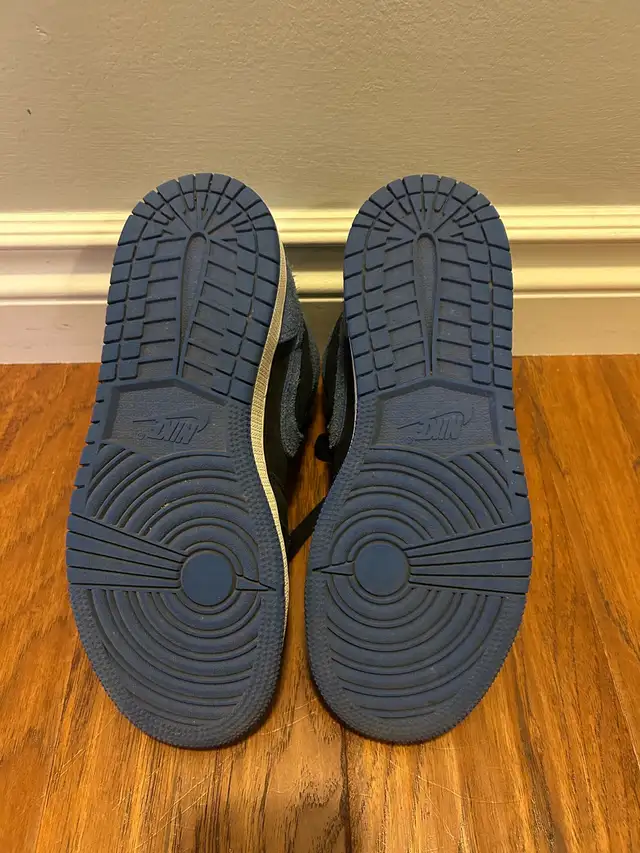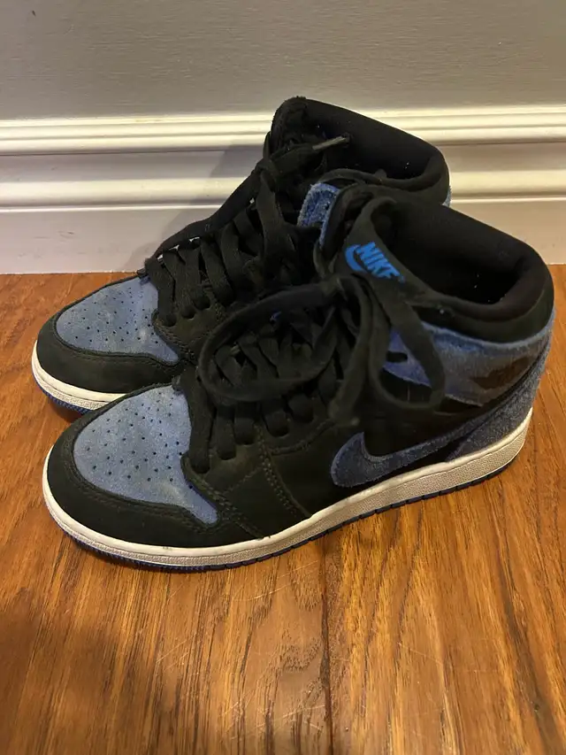 Good condition blue and black suede Nike Air Jordans. Size 4Y.