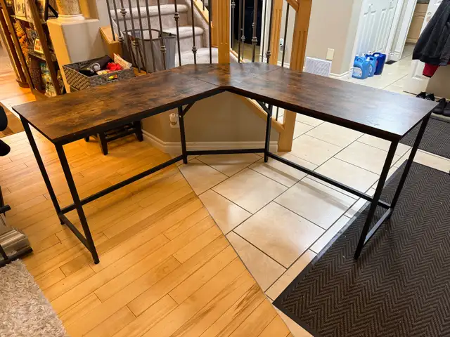 L-shaped desk (60”x60”)…EXTREMELY GOOD CONDITION...ONLY $75. Please TEXT me at 780-604-9602 to arrange a time to pick up.