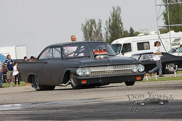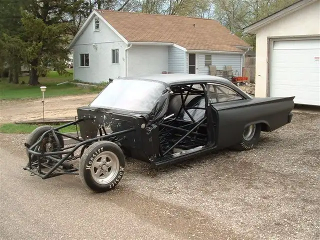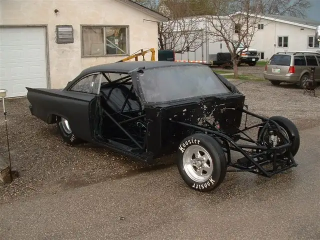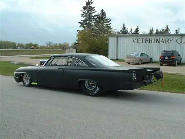 Lady driven way too cool rat rod looking 1961 Ford star liner, full double frame rail tube chassis race car, approximate 2800 LBS double frame rail front to back mild steel 750 certification has expired, but will pass easy again, set up for Ford hemi boss nine style motor and powerglide or Lenco. This is one of the coolest Ford race cars ever seen out there. It's big and it's fast and the only one like it, it is sold as a roller no motor no transmission or electronics. All wiring is left in car. It comes with big block Ford motor plates and fuel cell and whatever else I can throw in. All tires have 18 passes. Bead lock rear 16 inch rims. Bulletproof all strange Dana 60, 456, all auto meter gauges, it's a steel body with fiberglass doors, hood, trunk lid, and bumpers. Front fenders are steel. It has all strange Strut front end. Strange brakes. Wheelie bars. Parachute. The body is flat black rat rod looking, with 1000 hp tuneup and 5% overdrive at 7 pounds of boost on alcohol The car runs 550s in the 8 mile all day long with a mild Boss hemi, can easily run in the 4s in the 8 mile with a little boost, have videos please call frank 1-204-793-9798 located in woodlands MB canada