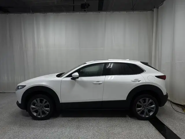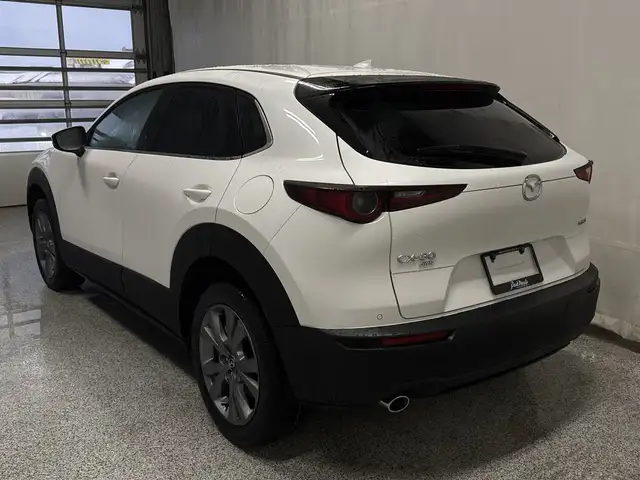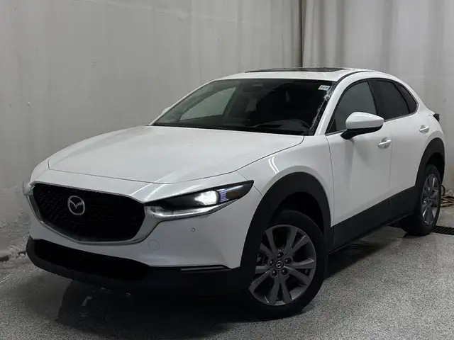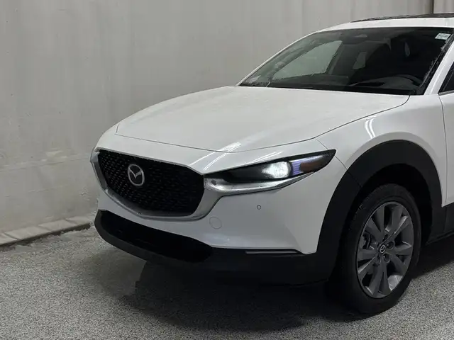 Our dynamic 2025 Mazda CX-30 GT AWD can deliver terrific thrills in Snow Flake White Pearl! Powered by a 2.5 Liter 4 Cylinder that delivers 250hp to a paddle-shifted 6 Speed Automatic transmission for aggressive acceleration. This All Wheel Drive SUV is also eager to explore, thanks to Off-road Traction Assist, and it sees nearly approximately 7.1L/100km on the highway. Sweeping lines emphasize the sporty nature of our spirited CX-30, which has signature LED lighting, a power sunroof, a power liftgate, a gloss-black grille, and bold alloy wheels.