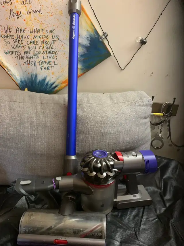 This is a used Dyson V11 Absolute cordless vacuum cleaner, known for its powerful suction and advanced filtration system. It's designed to deep clean your entire home, from carpets to hard floors, and easily converts to a handheld for versatile cleaning. I have provided pictures that clearly indicates its used condition.