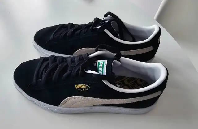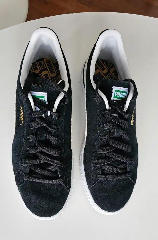Woven PUMA Logo label at tongue and metallic foil PUMA Cat Logo at heel.